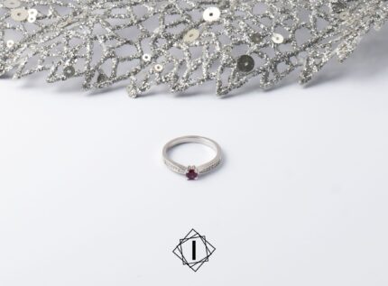 Prsten od belog zlata sa rubinom i brilijantima
